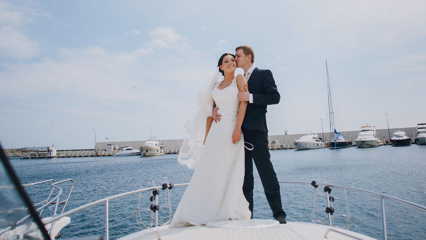 The yacht is used for the celebration — your ceremony setup, reception, dinner, and time with guests on the water. This is the standard format and keeps everything aligned with local regulations.